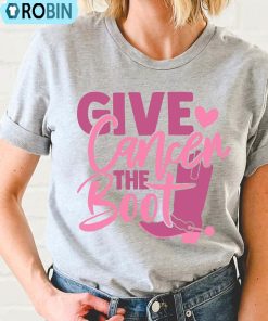 This Give Cancer The Boot Retro Shirt Breast Cancer Unisex Tshirt Long Sleeve is made with a clever and modern design. The vintage look and feel of this shirt makes it a perfect addition to any wardrobe. The 100% cotton material is comfortable and lightweight, while the unisex fit allows it to be worn by any gender looking for a stylish and unique piece. The message Give Cancer The Boot is featured in bright white lettering against the light grey material, and is sure to draw attention and conversations. The long sleeves ensure you can support the cause and promote awareness all year round.