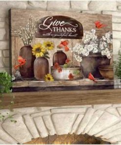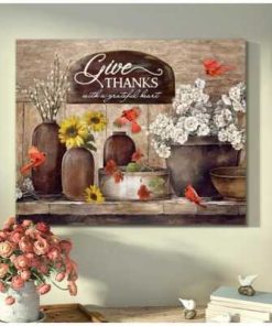 Give Thanks Cardinal Wall Art Floral Decor