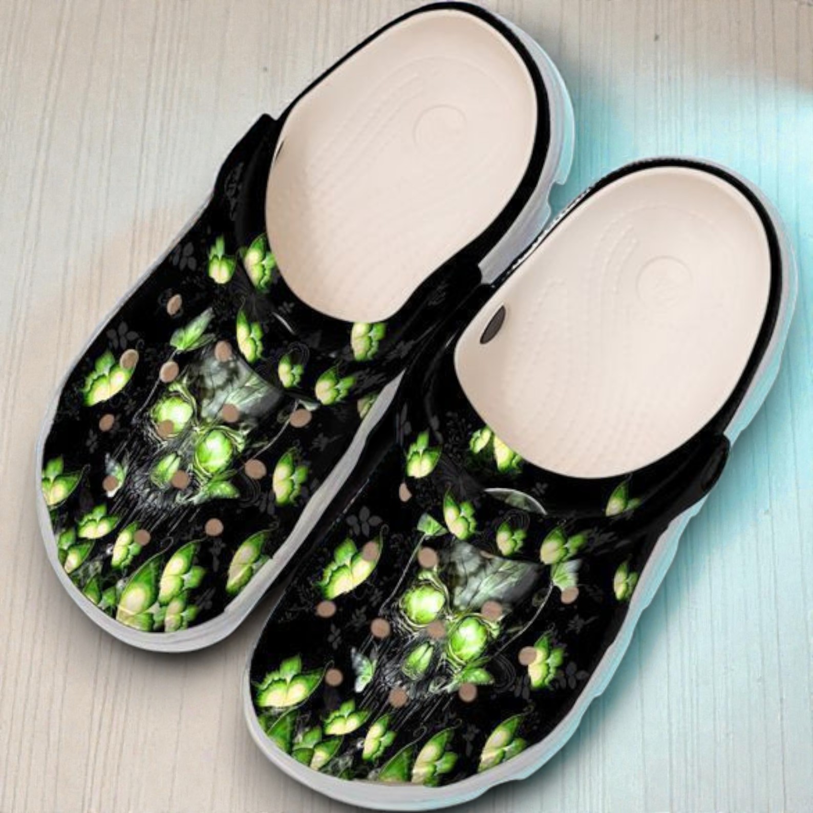 Glowing Green Skull Crocs – Butterfly Swarm Graphic Classic Crocs
