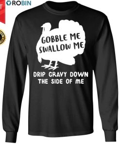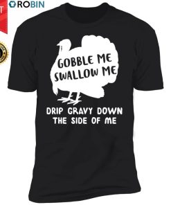 Gobble Me Swallow Me Drip Gravy Down The Side Of Me Turkey Shirt Thanksgiving Funny T-Shirt.