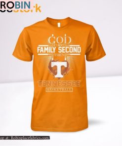 The God First Family Second Then Tennessee Basketball Shirt is a symbol of faith, family values, and love for the Tennessee basketball team. This shirt represents the importance of prioritizing God and family above all else, while also showing support for one’s favorite sports team. It is a meaningful and stylish way to display one’s beliefs and team pride. The design is sure to catch the eye of fellow fans and those who share similar values.