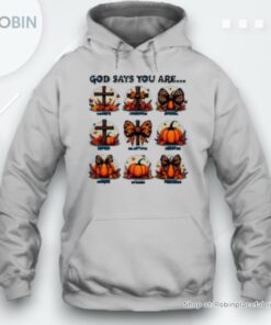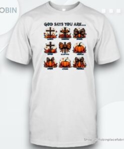 God Says You Are Fall Coquette Christian Affirmation Unisex Shirt details