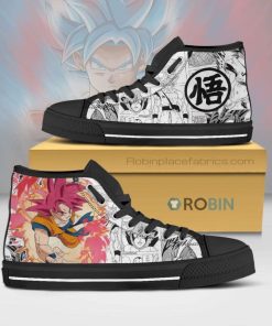 Goku Super Saiyan God Dragon Ball Anime Mixed Manga Style Canvas High Top Shoes