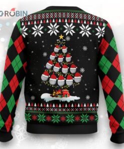 Golf enthusiasts, this one's for you! A whimsical Christmas tree crafted from golf balls, accented with festive snow patterns, turns holiday cheer into a hole-in-one. Bold red and green argyle sleeves add a classic touch. Ideal for a holiday party or cozying up by the fire. Let your love for the sport shine brightly this season with this playful and unique design.