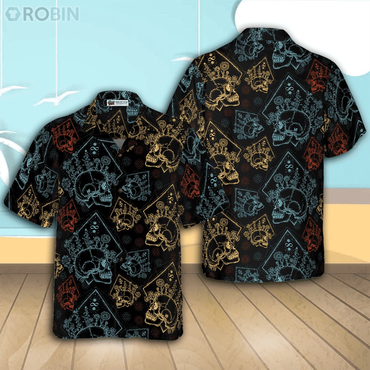 Gothic Skulls In Scrapbooking Style Casual Button Down Hawaiian Shirt features