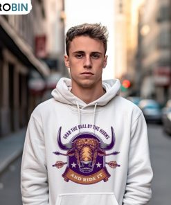 The Grab the Bull by the Horns and Ride It Shirt is a fun and stylish way to make a statement and show off your sense of adventure. This original, stylish t-shirt features a unique design of a bull with its dominating horns, ready to take on whatever comes its way. The black and cream colors represent strength and boldness, while the vivid image of a bull means that you are a powerful and independent person. With this shirt, you can let everyone know that you are not afraid to take on new challenges and have a lot of fun. The unique design stands out and gives you a look that is both inspiring and stylish. Take charge of your life in the fashionable and adventurous way with the Grab the Bull by the Horns and Ride It Shirt!