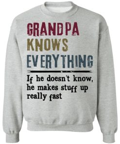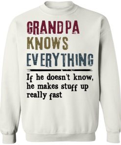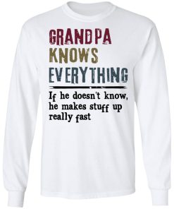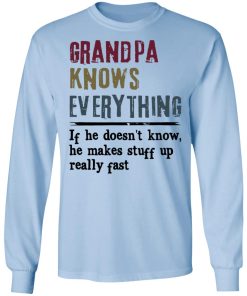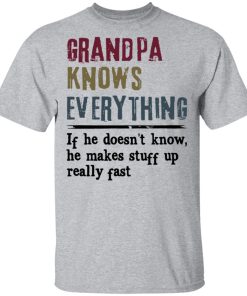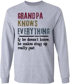 Grandpa Knows Everything If He Doesn’t Know He Makes Stuff Up Shirt. Available in t shirt, long sleeve, tank top, hoodie, sweatshirt and multiple color. If you want in another color please contact us.