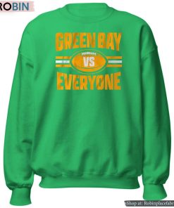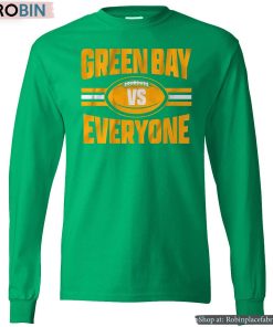 The Green Bay vs Everyone Shirt is a bold and eye-catching graphic tee that showcases team loyalty and hometown pride. The design features a clever play on words that signifies the unwavering support of Green Bay fans. With a striking color combination and high-quality fabric, this shirt is sure to make a statement and stand out in any crowd. Perfect for game day or casual wear, the Green Bay vs Everyone Shirt is a must-have for any die-hard Packers fan.