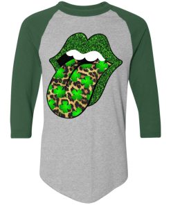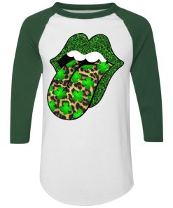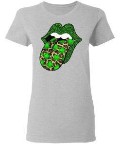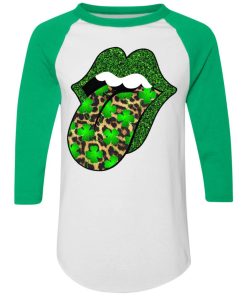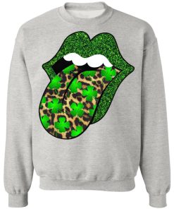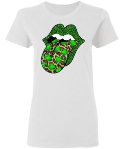 Green glitter lips leopard Rolling Stones cute Saint Patrick's Day Shirt