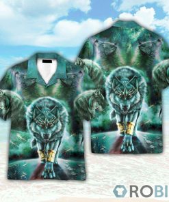 Green King Wolf Button's Up Shirts, Hawaiian Shirt features
