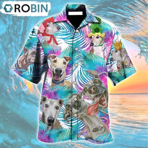 + Greyhound Tropical Leaf Style Hawaiian Shirt, Gìt for Summer Shirt Regular Fit Short Sleeve for All Occasions: Perfect for Carnival Festival, Vacation,Summer Beach,Holiday, Hawaii Party, Break, Business and Casual ect.