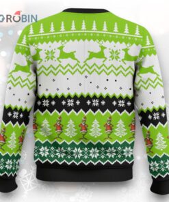Add a touch of holiday mischief to your wardrobe with this vibrant design, featuring the iconic Grinch delighting in a festive coffee moment. Dotted with playful, whimsical patterns, it captures the spirit of fun and festivity. Perfect for any Christmas gathering where you want to stand out with a blend of humor and holiday cheer. This sweater’s print is sure to be a conversation starter!