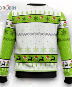 Unleash your inner holiday grump with this witty and colorful sweater! Featuring playful Grinch designs, festive snowflakes, and cheeky reindeer, it humorously declares your DNA as 100% Grinch. Ideal for those who love a fun twist on the traditional Christmas spirit. Let your personality shine at any festive gathering with this eye-catching design.