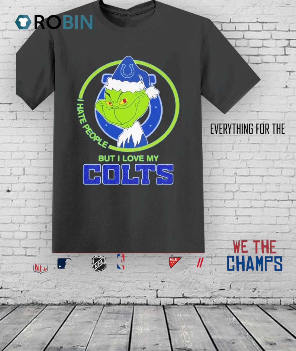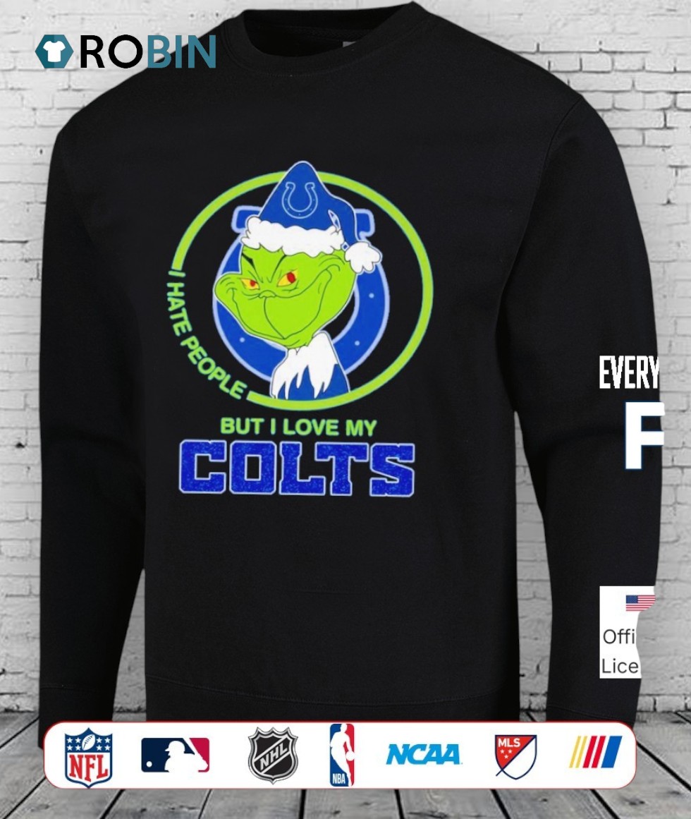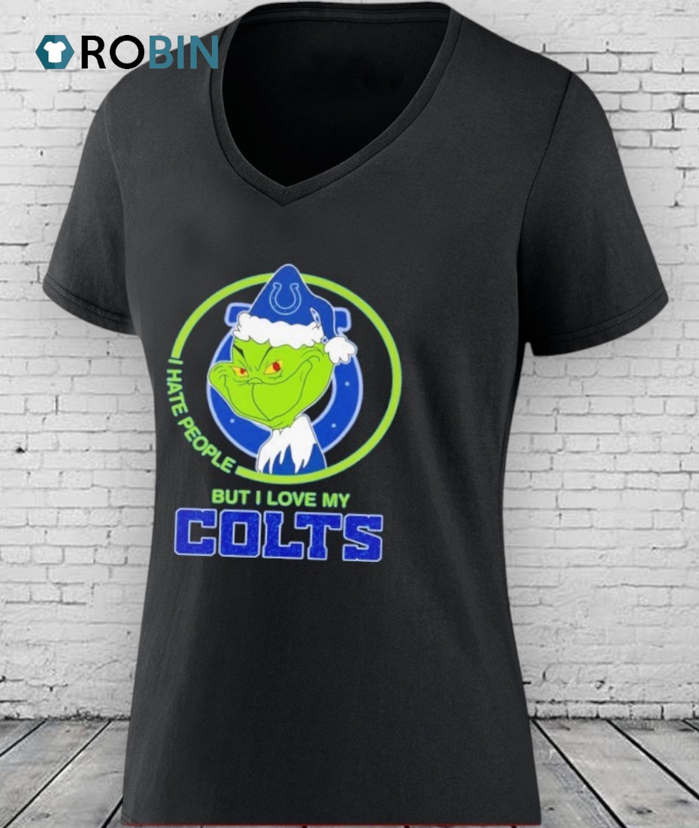 Grinch Santa I Hates People But I Loves My Indianapolis Colts Football Xmas 2025 Shirt