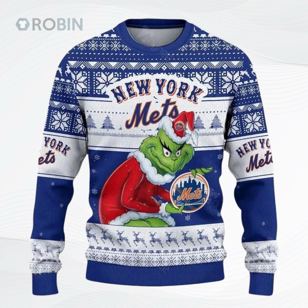 Steal the show (and maybe Christmas) with this festive and funny sweater! Show off your Mets pride with a touch of holiday mischief. Perfect for game days, holiday parties, or spreading some cynical cheer. Get yours before they're gone!