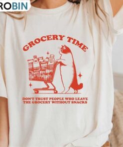 Grocery Time Retro Unisex Hoodie, Vintage Cat Lover Short Sleeve Crewneck