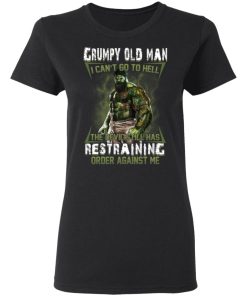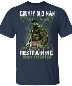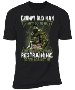 Grumpy old man I can’t go to hell the devil still has restraining order against me shirts