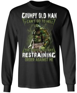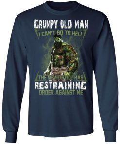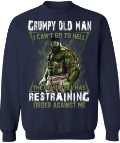Grumpy old man I can’t go to hell the devil still has restraining order against me shirts. Available in t shirt, long sleeve, tank top, hoodie, sweatshirt and multiple color. If you want in another color please contact us.