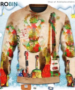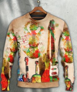 Guitar Abstract Guitar Colorful Art Style Christmas Ugly Sweater, Sweatshirt