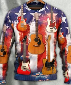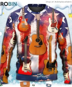 Guitar Independence Day Star America Christmas Ugly Sweater, Sweatshirt details