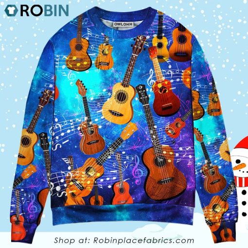 Guitar Ukulele Love Forever Sweater Ugly Christmas Sweater details
