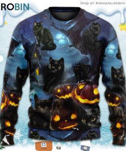 Halloween Black Cat Dark Night Style Ugly Christmas Sweater details
