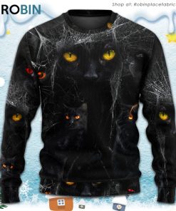 Halloween Black Cat In The Dark 3D Printed Christmas Ugly Sweater details