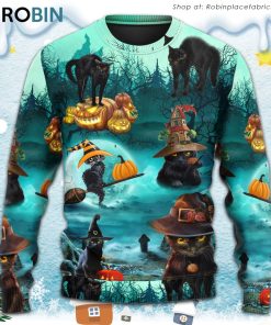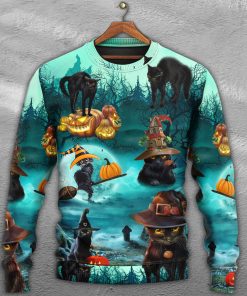 Halloween Black Cat Pumpkin Scary Style Christmas Ugly Sweater, Sweatshirt details