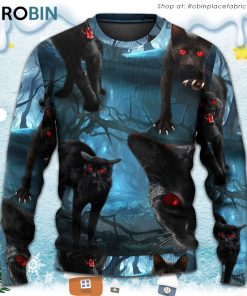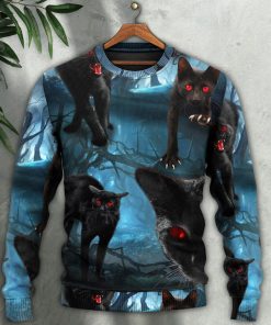 Halloween Black Cat Scary Style Christmas Ugly Sweater, Sweatshirt details