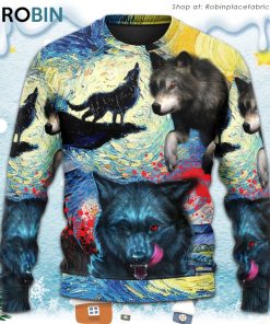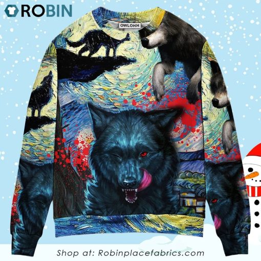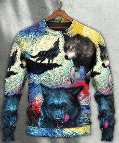 Get ready to make a statement this holiday season with the Halloween Black Wolf Crazy Starry Night Blood Art Style Christmas Ugly Sweater Sweatshirt. This unique and eye-catching sweater combines elements from different themes to create a one-of-a-kind design. The black wolf adds a touch of Halloween, while the starry night and blood art style give it an edgy and mysterious feel. Perfect for those who want to stand out in the crowd, this sweater is sure to be a conversation starter at any holiday gathering. Add a dash of creativity and individuality to your wardrobe with this cool and festive sweater.