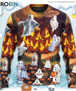 Halloween Boo Pumpkin Burning Scary 3D Printed Christmas Ugly Sweater details