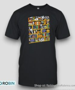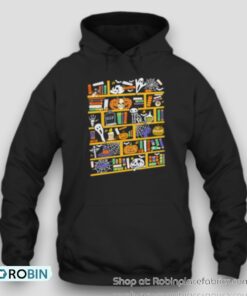 Embrace the spooky season in style with a shirt that's designed to thrill! Perfect for educators and book lovers alike, this cleverly crafted apparel features a whimsical bookshelf adorned with Halloween-themed books and decorations, offering a unique blend of spooky charm and scholarly flair. Whether you're teaching a class, attending a festive gathering, or simply curling up with your favorite scary story, this versatile shirt promises to make a statement while keeping you comfortably fashionable. Dress up your Halloween wardrobe and let your passion for books shine with every eerie detail—an essential pick for the season!