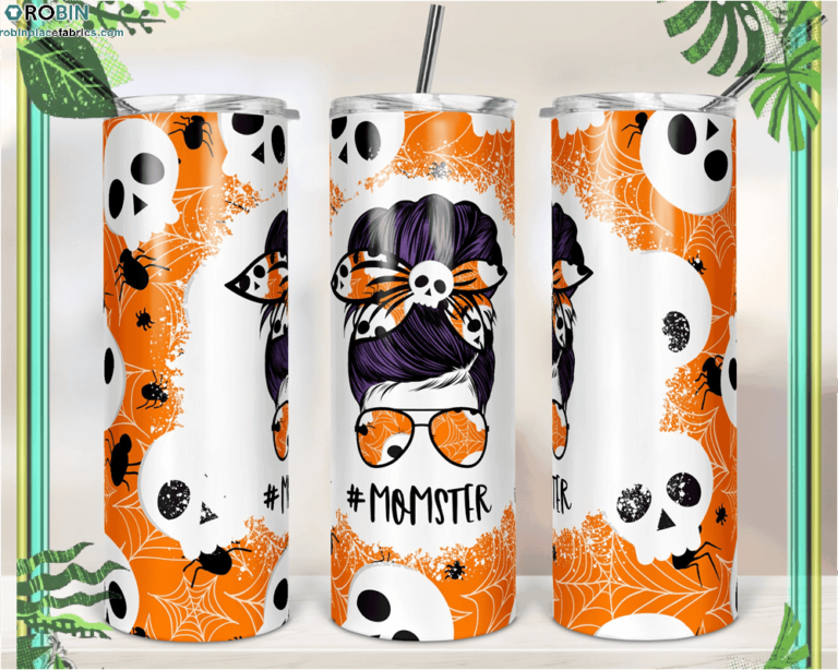 Halloween Cobweb Skull Momster Mom Bun Hair Skinny Tumbler RBPL45