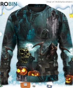 Get ready to spook everyone this holiday season with the Halloween Ghost In The Dark Pumpkin Scary 3D Printed Christmas Ugly Sweater. This unique sweater features a hauntingly beautiful design that glows in the dark, making it perfect for Halloween parties or trick-or-treating. The 3D printed ghost and pumpkin add a touch of spooky fun to the sweater, while the Christmas-themed ugly sweater design adds a festive twist. Whether you’re scaring your friends at a Halloween bash or spreading holiday cheer at an ugly sweater party, this sweater is sure to make a statement.