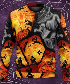 This unique and eye-catching sweatshirt is the epitome of holiday spirit. With its vibrant colors and intricate designs, it is sure to stand out in any crowd. Whether you’re attending a Halloween party, a Christmas gathering, or simply want to embrace the spooky season, this sweater has got you covered. The ghost and pumpkin motifs add a touch of Halloween charm, while the scary Christmas elements give it an unexpected twist. Perfect for those who appreciate the unconventional, this sweater is a must-have for any festive occasion.