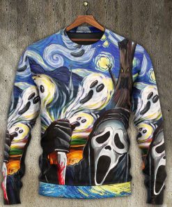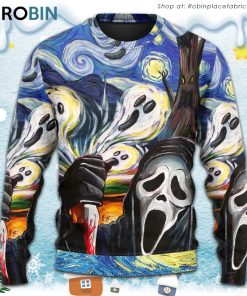 Halloween Ghost Scream Starry Night Funny Boo Art Style Ugly Christmas Sweater details