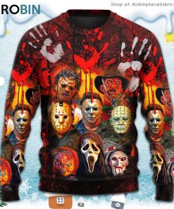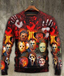 Halloween Horror Movie Characters Blood Scary Christmas Ugly Sweater, Sweatshirt