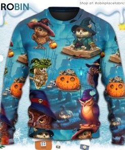 Halloween Owl Witch Sky Night Ugly Christmas Sweater details