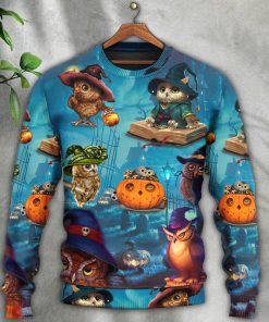 This unique and playful sweater captures the essence of the Halloween season with its whimsical design. Against a dark and mysterious night sky, an adorable owl perches on a branch, wearing a witch’s hat. The combination of the owl and the witch’s hat creates a fantastical and captivating image. The sweater’s ugly Christmas sweater style adds an element of fun and nostalgia, making it a quirky and festive addition to any holiday gathering or event. With its attention-grabbing design, this sweater is sure to be a conversation starter and a standout piece in any wardrobe.