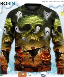 Halloween Pumpkin Crazy Ghost Style Christmas Ugly Sweater, Sweatshirt details