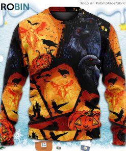 Halloween Raven Pumpkin Scary Christmas Ugly Sweater, Sweatshirt details