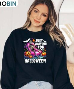 Halloween Skeleton Unisex Hoodie, Trendy Just Waiting For Halloween Unisex Shirt, Hoodie, Sweatshirt details