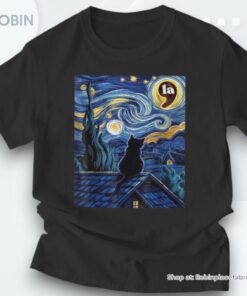 Step into a realm where art and cultural icons intertwine with our exclusive shirt, perfectly blending the eerie ambiance of Halloween with the timeless allure of Van Gogh's Starry Night. Featuring a captivating black cat and a nod to one of the most influential figures in modern politics, this shirt isn't just apparel—it's a conversation starter. Embrace a look that's both sophisticated and delightfully spooky, making it the perfect addition to your festive wardrobe.