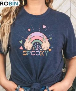 Halloween Stay Spooky Shirt, Halloween Ghost Rainbow Sweater Short Sleeve details