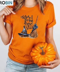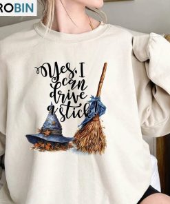 Halloween Witch Broom And Hat Shirt, Yes I Can Drive A Stick Crewneck Unisex T-shirt details