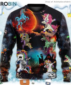 Halloween Zombie Unicorn Dabbing Ugly Christmas Sweater details