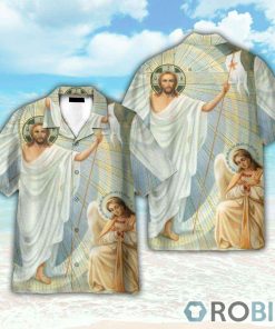 Happy Easter Sunday Jesus Is Risen Christians Hawaiian Shirt features
