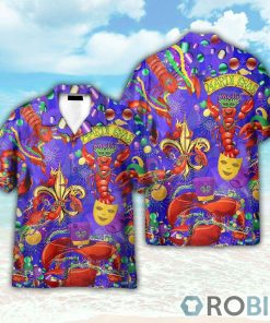 Happy Mardi Gras Shrimps Hawaiian Shirt features
