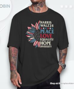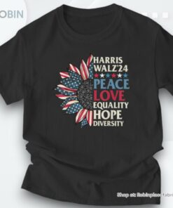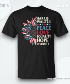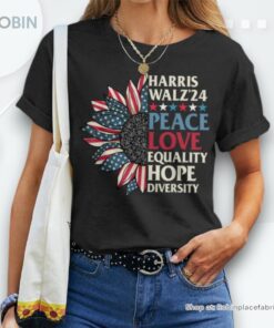 Harris Waltz 2024 Peace Love Equality Hope Us Flag Sunflower Unisex Shirt