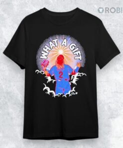 Step into the spotlight with this dynamic design that features a bold figure triumphantly holding a ball, framed by waves and the words What a Gift. Perfect for fans seeking a unique design that captures excitement and admiration. This striking artwork exudes energy and passion, making it a standout piece in any collection.